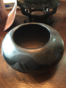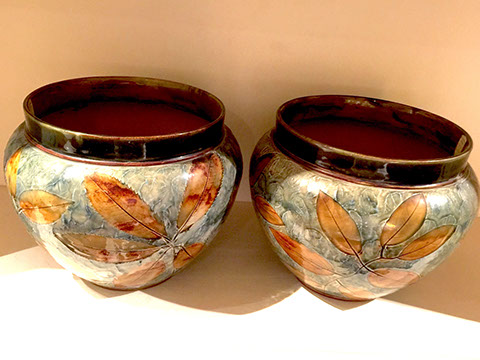 Native American black glazed pottery signed Santana/Adam; Moorcroft; Redwing; Pair of Early Royal Doulton cachepots; McCoy.