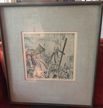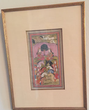 Original Paintings, Lithographs, and Prints: Artists include: Basilios Poulos, Jim Dine: “Spray-Painted Robe”, lithograph; Luis Lopez Loza, Jean Cocteau, Tony Bass, 19th Century oil portrait of “Young girl at a Piano”, signed Zimmerman, 1835; Watercolor by Jacques Villon, “Elysus”; Etching by Max Pollak, “Mexico Market Day”; Bronze sculpture by Alberto de la Varga, “Couple”; Gouache, c. 1814, an illustration for “The Life of Alexander the Great”, Gouache, 18th century, by Rajput, (Hindu); Limited edition bronze bust of a woman signed F. Heart dated1987; Bronze sculpture of children, “Crack the Whip” by Mark Hopkins; other listed artists: Elaine Badgley, John O’Neil, Geoffrey Lewis, David Mark, Edo Pratini, Tom Fricano, Gunnar Anderson, Robert Emory Johnson, John Silk Deckard.
