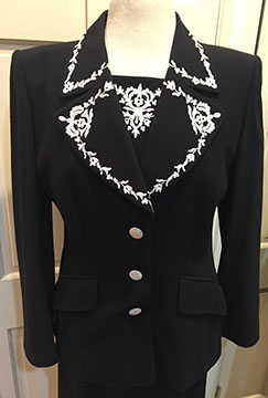 Louis Vuitton “Ellipse” purse; L.V. train case; Chanel quilted black purse and wallet; Judith Leiber purses; Iraj Moini purse; Ferragamo evening purses; St John suit, jackets and blazers; Elsa Peretti woven sterling evening bag from Tiffany; Escada suit; Burberry quilted jacket; Designer shoes from Chanel, Stuart Weitzman, Escada and Ferragamo; Designer hats; Gray mink jacket; White fox jacket; Many other couture designs too numerous to list.
