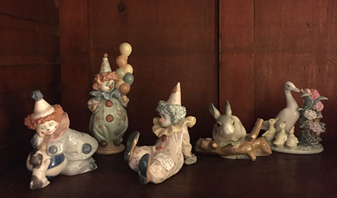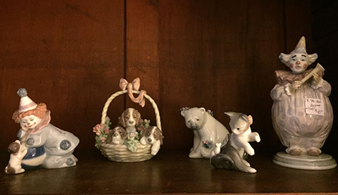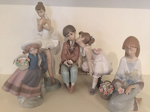 six Completely Decorated Theme Trees! LLadro figurines, including: “Litter of Love”, “Littlest Clown”, and others;