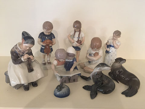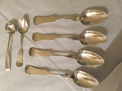 Holloware and flatware; Coin silver spoons; Royal Copenhagen Christmas spoons, vermeil over sterling.