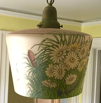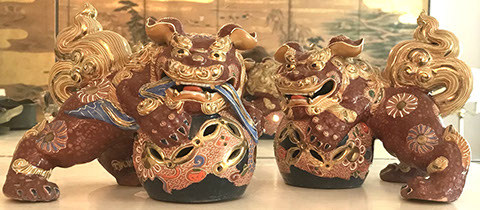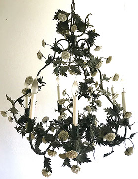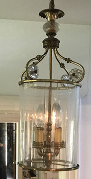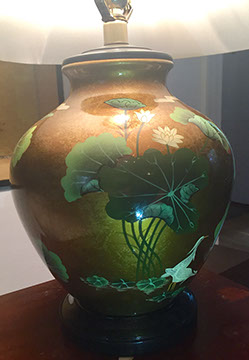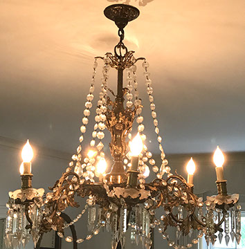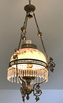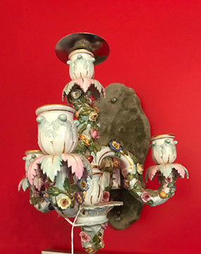 Lighting:  Antique Meissen “Blue Onion” lamp; Pair of brass three branch candlestick lamps;