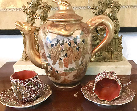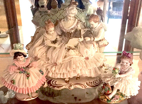 Special Attractions: Sterling snuff box deaccessioned from the Estate of Miss Ima Hogg; Pair of French bronze 6 light Empire candlesticks; Antique Meissen “Blue Onion” Lamp; Inlaid wood French carriage clock, circa 1870; Collection of rare black label Belleek; Belleek Lithophane; Collection of porcelain oyster plates; Dresden, Collection of ABC; Russian box collection; Handmade Oriental rugs; Victorian hand painted gas light; Collection of walking sticks; Garden pots; Large library of research books;