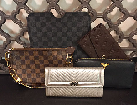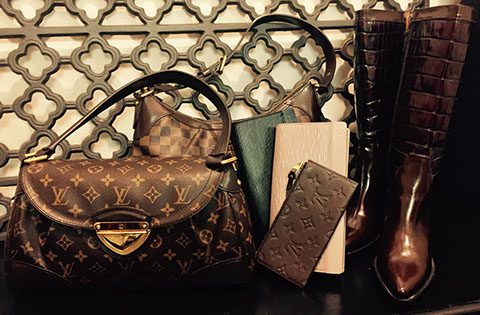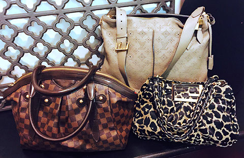 Chanel; Louis Vuitton; Valentino; Celine; Gucci; St. Nicoli; Judith Leiber; Balenciaga; Fendi; Chloe; Prada; Versace; Dior; Paloma Picasso; Carlos Falchi; Kate Spade; Ferragamo; Hermes scarves, including Kermit Oliver for Hermes “Faune et Flore du Texas” (1986), Christian Vauzelles for Hermes “Cheval Turque”; Hermes ties; Furs: Sable & Mink; Mink stole; Custom made cowboy boots by Paul Wheeler