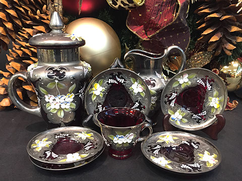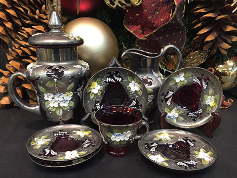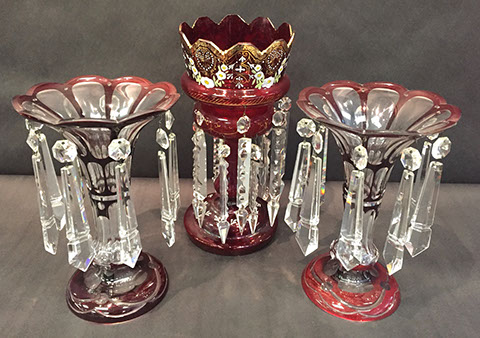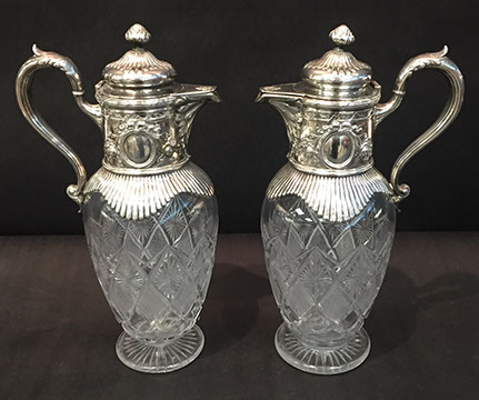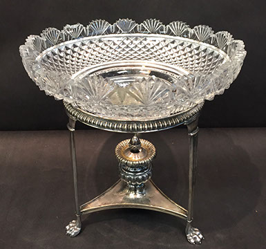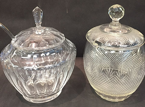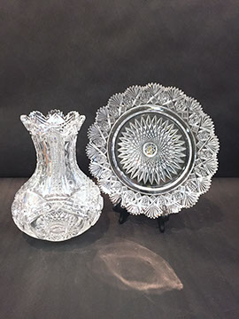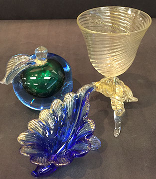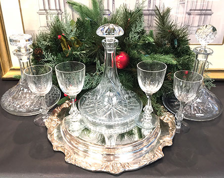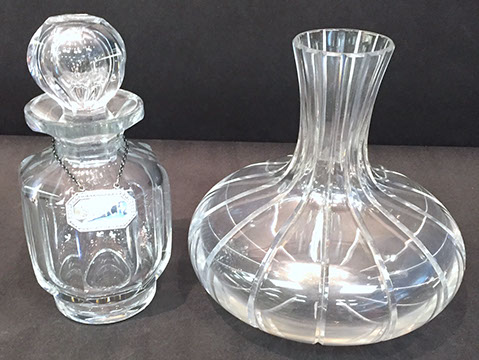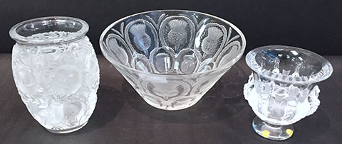 Large and important pieces of Lalique: stemware, perfume bottles, ring dishes, figurines; Daum: significant figurines, tall vase; Baccarat stemware, vases, decanters, figurines, place card holders; Waterford stemware in many patterns, decanters and vases; Rosenthal stemware; Bohemian cut to clear stemware, vases, lustres; Moser, Steuben lamp, animals; Gorham stemware and bar glasses; Orrefors, American Brilliant Cut glass stemware, vases, bowls, Tiffany & Co. bowls, vases; Edinburgh “Thistle” stemware; Lobmeyr; Murano lamps; Murano fruit and animal figurines; Victorian custard glass; Victorian Vaseline glass epergne; Cut glass punch bowls; Sabino
