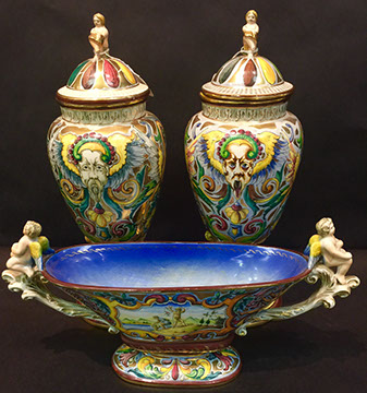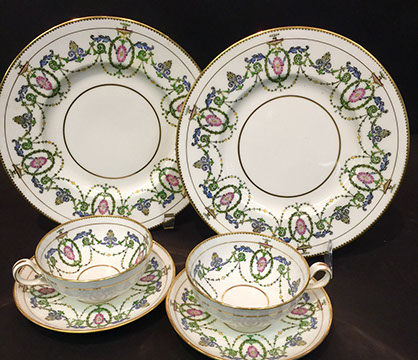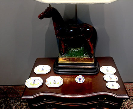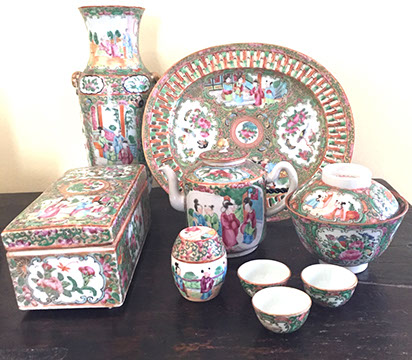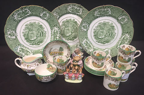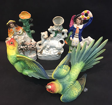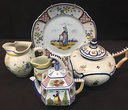 Limoges Haviland, Wedgwood & Royal Worcester dinnerware; Versace vase; Royal Worcester figurines; Sevres; Royal Cauldon “King’s Plate”; Tirschenreuth; Majolica; Staffordshire portrait figures from the Victorian period; Dresden; Wedgwood Jasperware; Royal Copenhagen figurines & dinner service; Villeroy & Boch; Collection of Rose Medallion; Delft; Mottahedeh; Herend; Imari; Collection of Quimper; Lladro; Boehm; Royal Worcester “Dorothy Doughty “ Carolina Perroquets; English Transferware; Limoges Haviland “Silver Anniversary”; Coimbra; Delft 4pc canister set; Capodimonte; “Old Paris”, Meissen; Minton