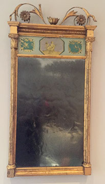 Pair of Royal Copenhagen, artist-signed lamps; Antique molded mahogany mirror, c. 1720-1740; Looking glass with central cherub & eagle flanked by birds on trees, probably American, c.1810; Antique looking glasses; Decorative lamps & Mirrors