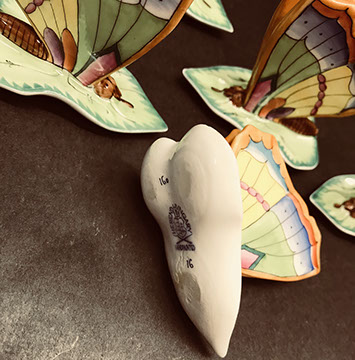 Royal Copenhagen Blue Flower/Braided; Extensive collection of Herend Village Pottery; Kaiser; Phillip Deshoulieres Limoges; Cobalt Majolica; French Longchamp “Grotesque” Faience; Limoges boxes; Mottahedeh; Ralph Lauren “Vineyard” china; Staffordshire; Spode Christmas china; Pair of Mottahedeh tea jars