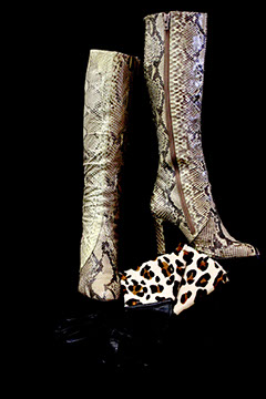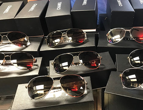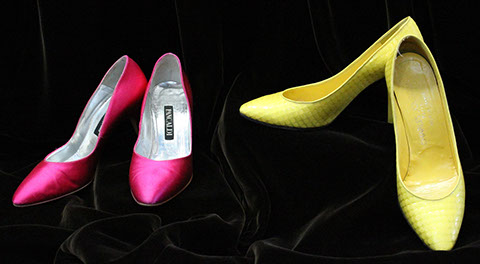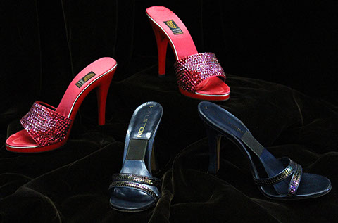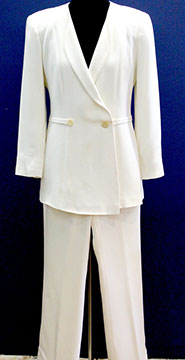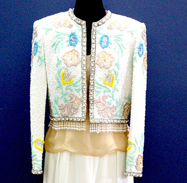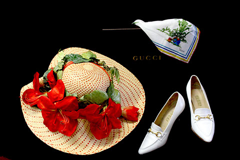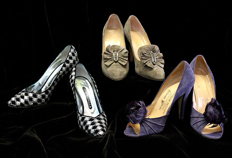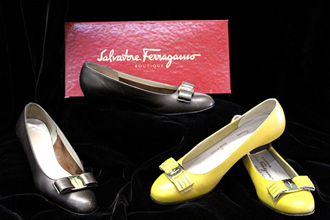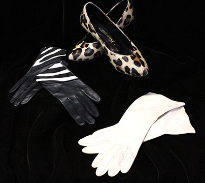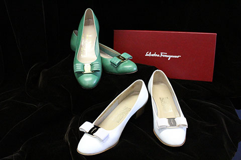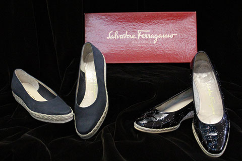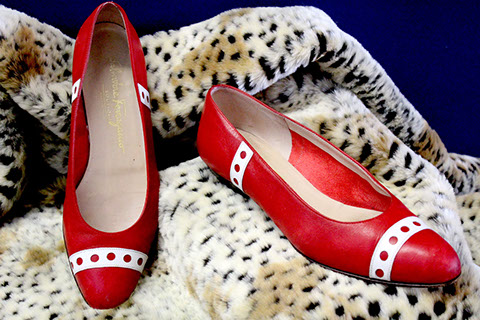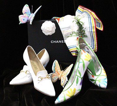Designer Clothing: Oscar de la Renta, Norman Norrell, Donna Karan, Carolina Herrera, Valentino, Escada, Giorgio Armani, Halston, Badgley Mischka, Bill Blass, Alfred Bosand, Shawn Ray Fons, Eleanor Simmons, Jean Louis, Sheila Davlin, Travilla, Raizee, Yves St. Laurent, Worth, John Anthony, Capriccio, Amen Wardy, Bernard, Lillie Rubin, Gloria Sachs, Sansapelle, Carla Christoff, Bogner; Designer Shoes: Louboutin, Chanel, Ferragamo, Charles Jourdan, Baci, Walter Steiger, Stuart Weitzman, Christian Dior, Galo, Beverly Feldman, Mr. Seymour, Rene Caovilla, Andrea Carrano, Donald Hubbard, Maude Frizon, Andrea Pfister; Designer Purses: Chanel, Louis Vuitton, Gucci, Judith Lieber; Chanel Sunglasses