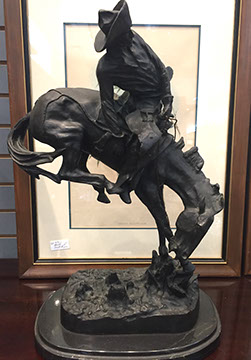 Original American & European oil paintings; Artists include: Porfirio Salinas, Erte, Gay Woods, Julien Robles, Lamar Briggs, Cortez, M. S. Bloodgood, Hamilton King, John Newman, Hal Sims, Sergio Bustamante “Noah’s Ark”; Joe Abbrescia; Ford Ruthling, Santa Fe artist; Signed prints & etchings; Signed bronzes: Cyprian Francois Venot (1808-1886) “L’Eneide”, Adrien Etienne Gaudez. (1845-1902); 17th Century Belgian Gothic tapestry depicting the Four Seasons, after the painting by Charles Le Brun